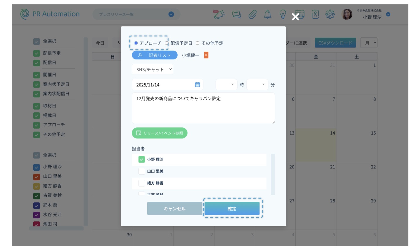 ※リリースやイベントに関連するアプローチの場合、過去の「リリース/イベントを参照」から選択してください。