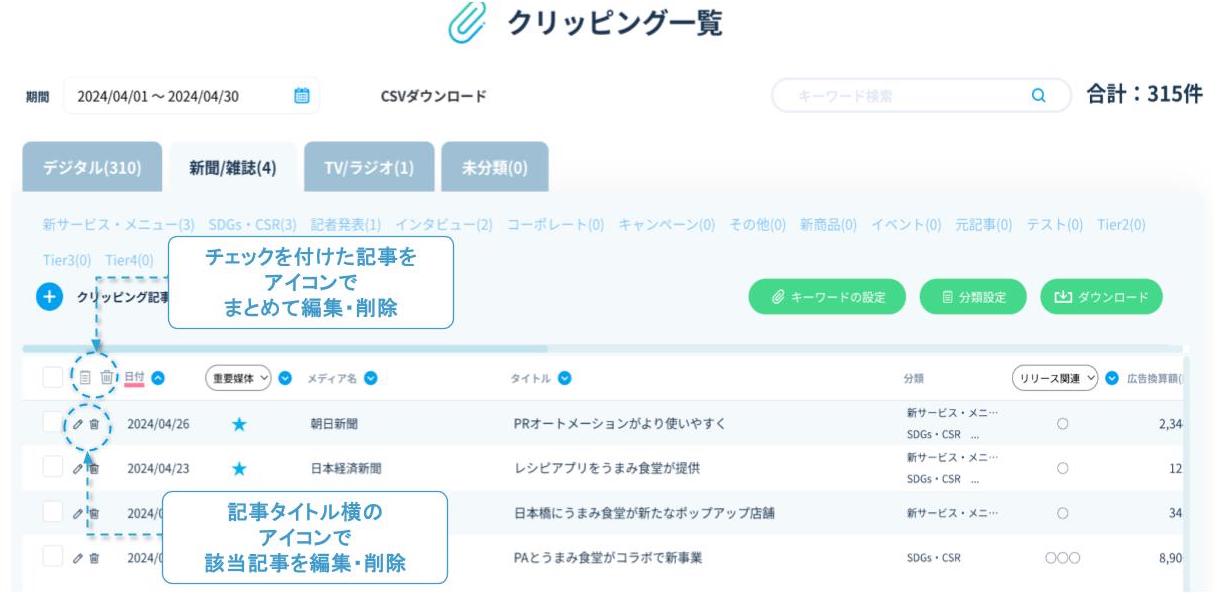 手動で追加したクリッピング記事については、編集・削除が可能です。