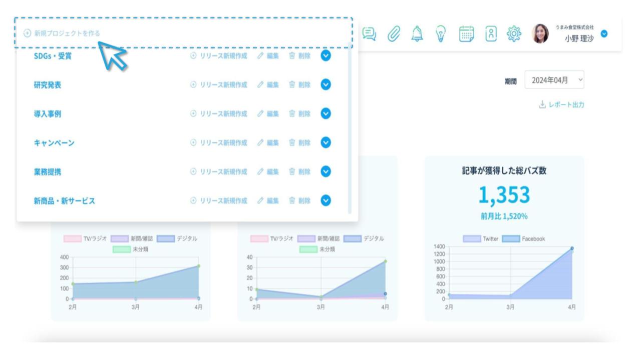 1.ログイン後、画面上のヘッダー内の「プレスリリース一覧」をクリック