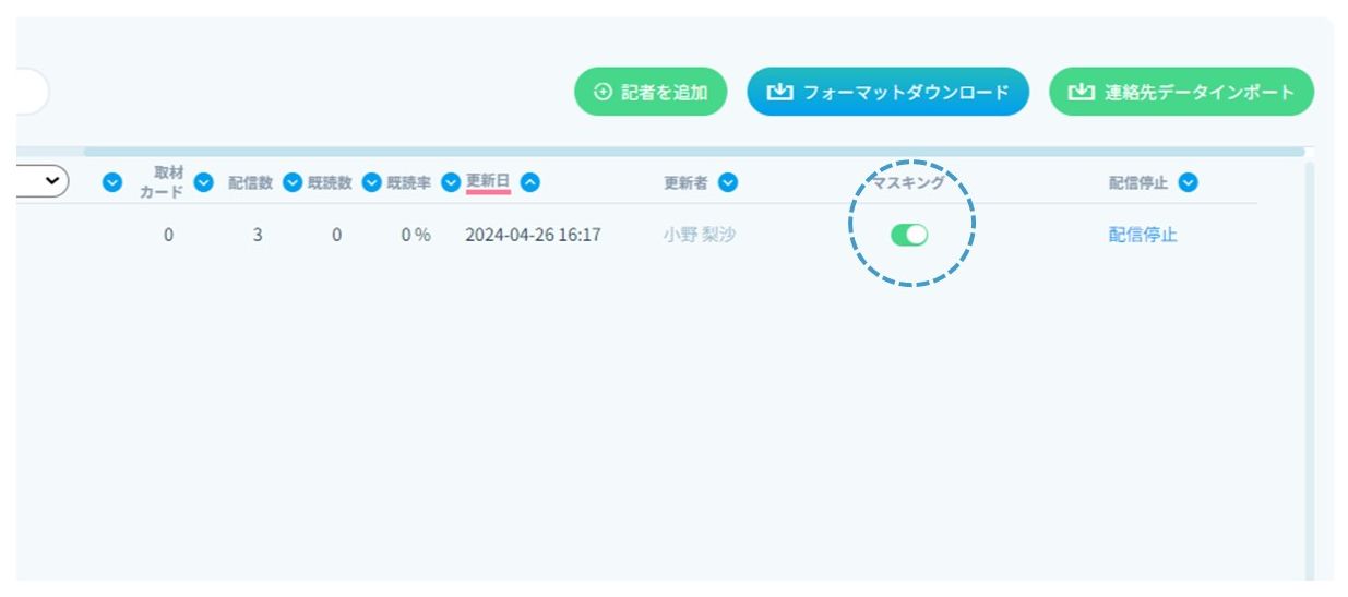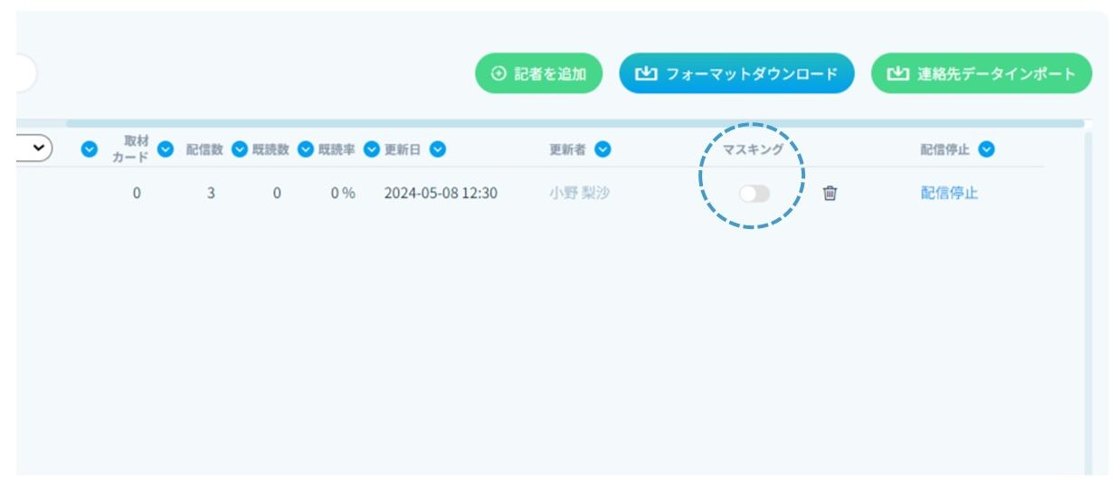 マスクした記者情報は、同じドメイン(メールアドレスの@以下)のメンバーで閲覧・編集・削除が可能です。