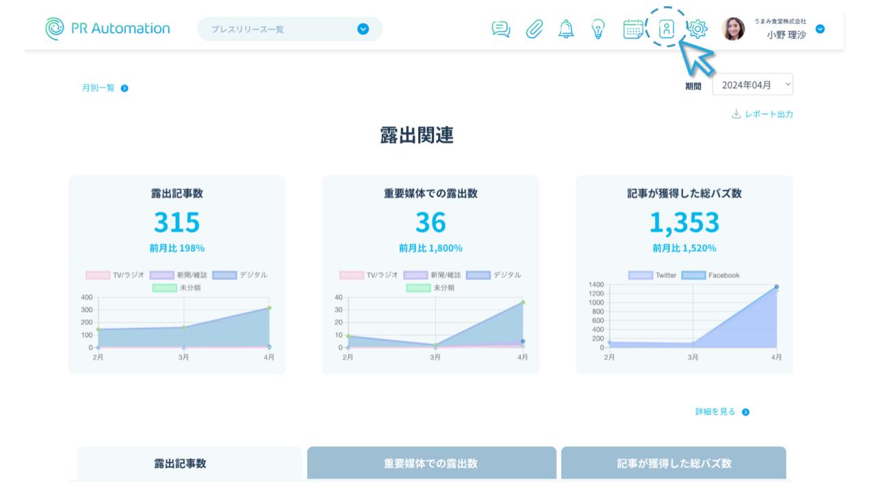 1.画面上のヘッダー内の人型アイコンから記者一覧に進みます。
