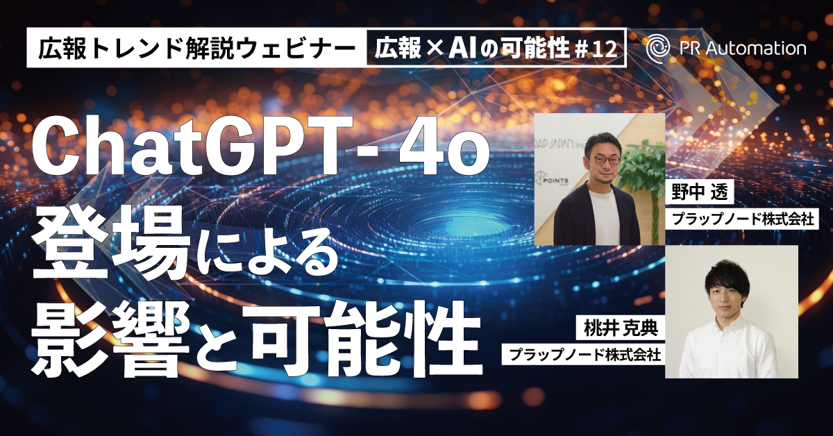 『広報トレンド解説ウェビナー「“ChatGPT-4o”登場による影響と可能性」』のご案内です。