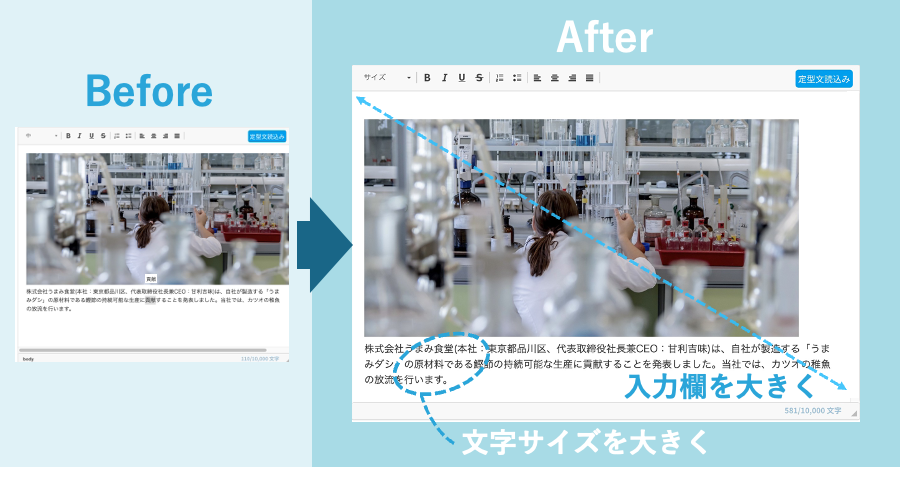 リリース入力欄を広げ、デフォルトのフォントサイズを大きくしました。