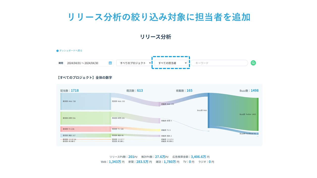 • リリース分析ページで担当者ごとの絞り込みができるようになりました。